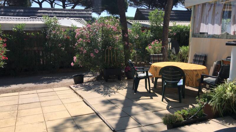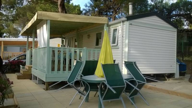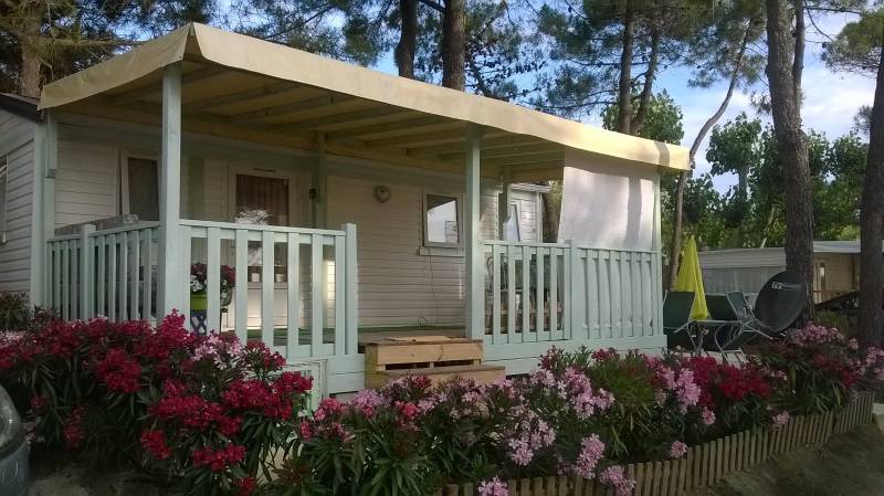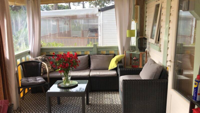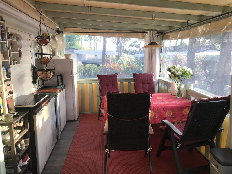 "Mobilehome Klaus" is equipped with 2 bedrooms, covered wooden terrace, TV, air conditioning, Senseo, washing machine, tumble dryer, dishwasher, Weber BBQ and about 250 metres from the beach.