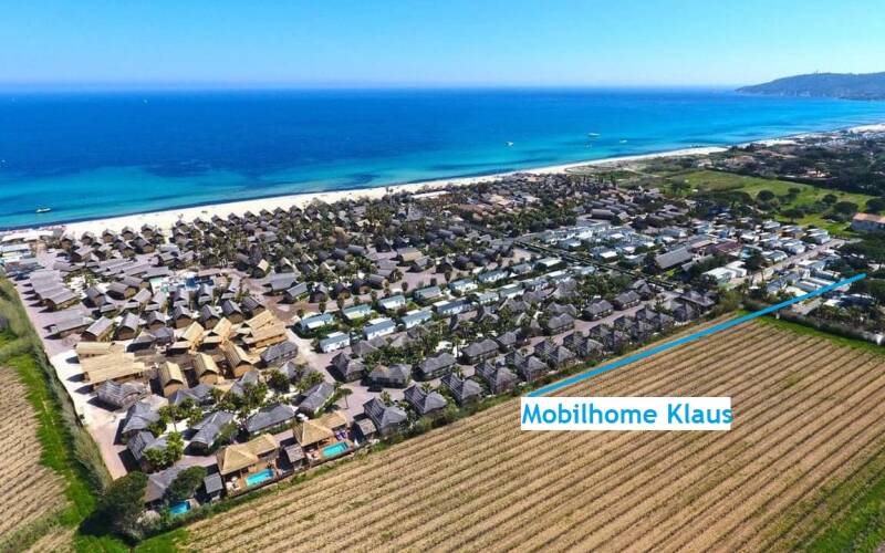 "Mobilhome Klaus" is voorzien van 2 slaapkamers, overdekt houten terras, tv, airco, Senseo, wasmachine, wasdroger, afwasmachine, Weber BBQ en ongeveer 250 meter van het strand.